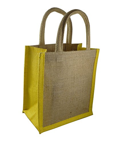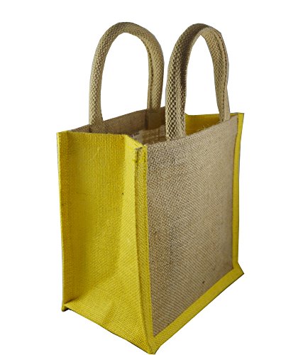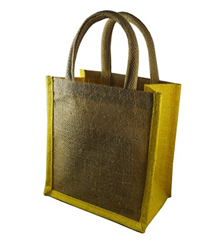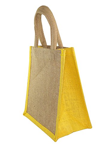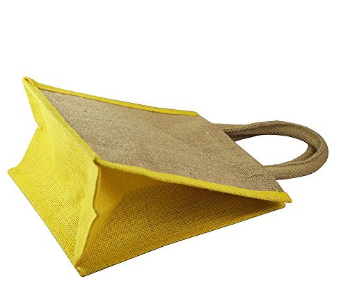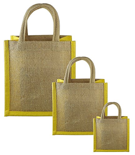 JO'S Jute Burlap Hessian Tote Reusable Bag For Grocery,Shopping,Lunch Bag,Gift Bag ,Multi Purpose Bag (Pack Of 3 - Small,Medium & Large) (Yellow)