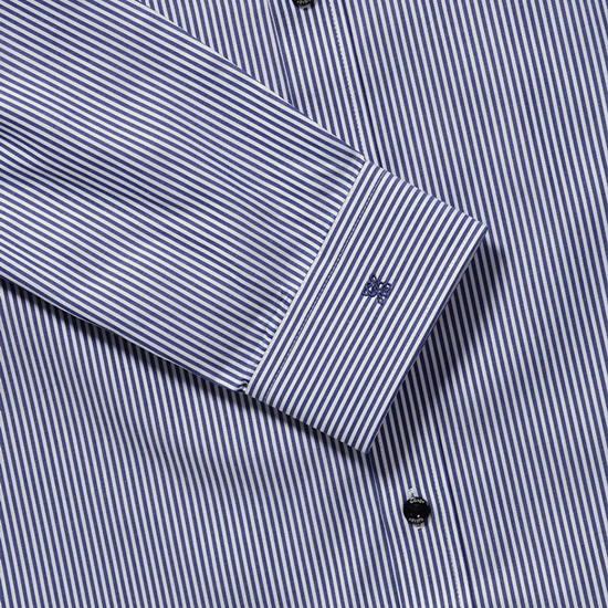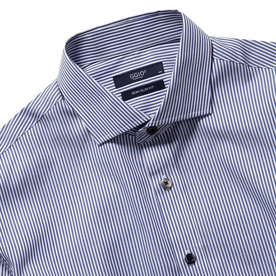 - 핀 스트라이프 텍스쳐의 남성 드레스 셔츠.