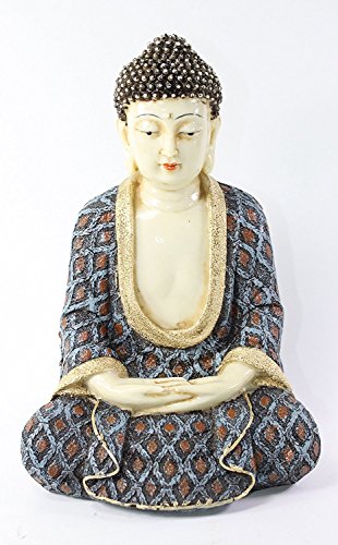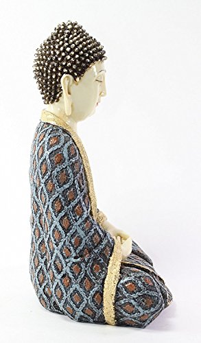 Feng Shui Blue, Red and Ivory Kasaya Buddha Dhyani Mudra Home Decor