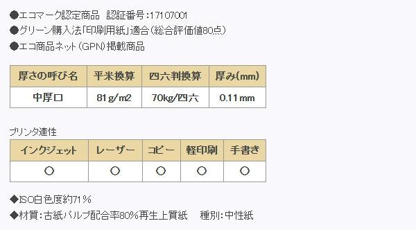 インクジェット、レーザーなどマルチ印刷対応・グリーン購入法適合の中厚口用紙です。たっぷり入った500枚パック。