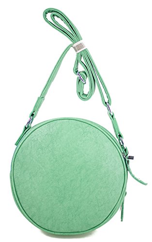 -. Feature : Features: 2 seperate zip-closure roomy compartment; front compartment includes 1 sunglasses and 1 cellphone pouch. / Strap: 1 adjustable shoulder strap is expandable up to 58 inches. / Material: Soft textured synthetic leather,solid-colored fabric lining, silver-tone hardware. / Exterior measures: 9"H x 9"W x 3"D / Origin: Made in China