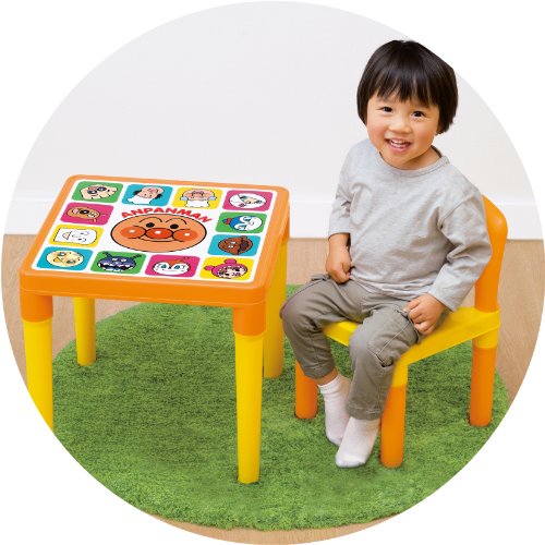 お子様の初めてのテーブルにぴったり!イスも付いた便利なセットです。天面には人気にアンパンマンのキャラクターが勢揃い!※組み立て式です。