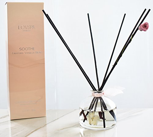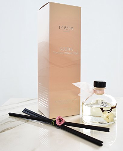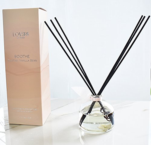 Deal of the Day! Tahitian Vanilla Bean Reed Diffuser Gift Set SOOTHE by LOVSPA | Vanilla, Amber & Tonka Bean Fragrance Oil | Soothing Kitchen or Bath Scent | Best Gift Idea for Mom or Grandma