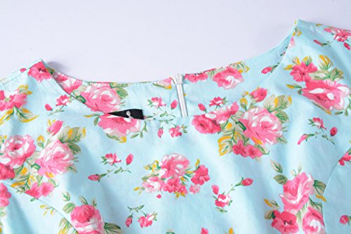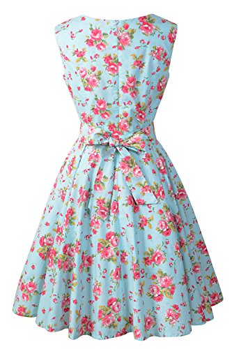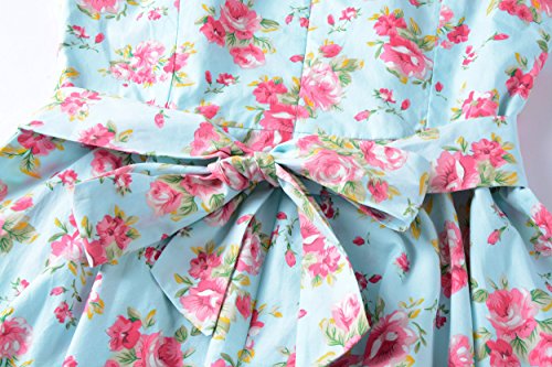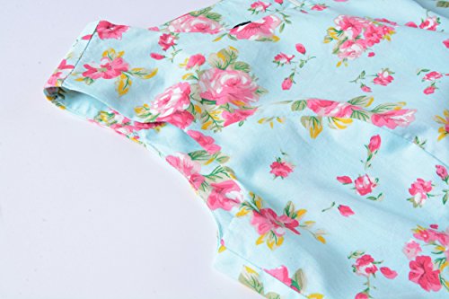 sleeveless scoop neck women's floral print cotton vintage dresses with belt
