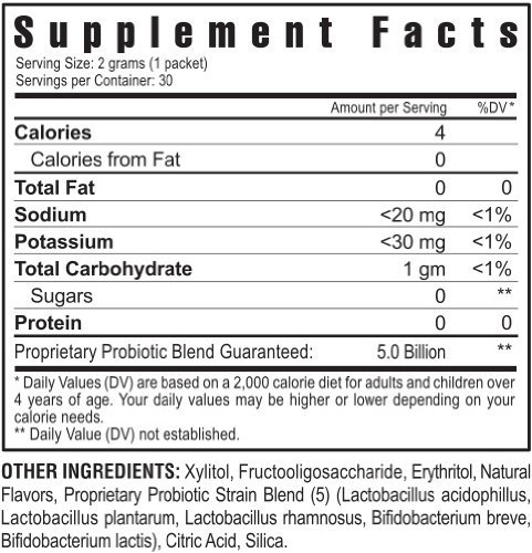 -. Feature : INTERNATIONAL SHIPPING AVAILABLE / Promotes healthy bacteria in the intestines / Contains 5 microencapsulated probiotic strains / Only 4 calories per packet! / 5 times more likely to cultivate than other probiotic supplements