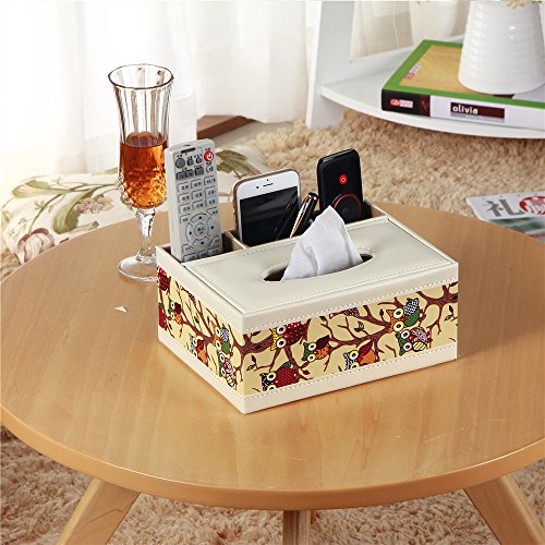 Monsiter Tissue Holders Cartoon Owl Leather Storage Box for Livingroom and Office Decoration - Multifunctional
