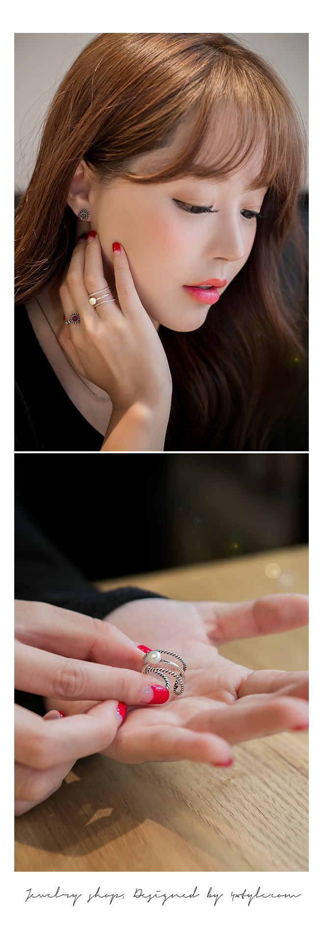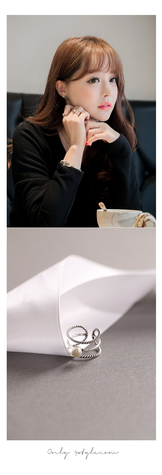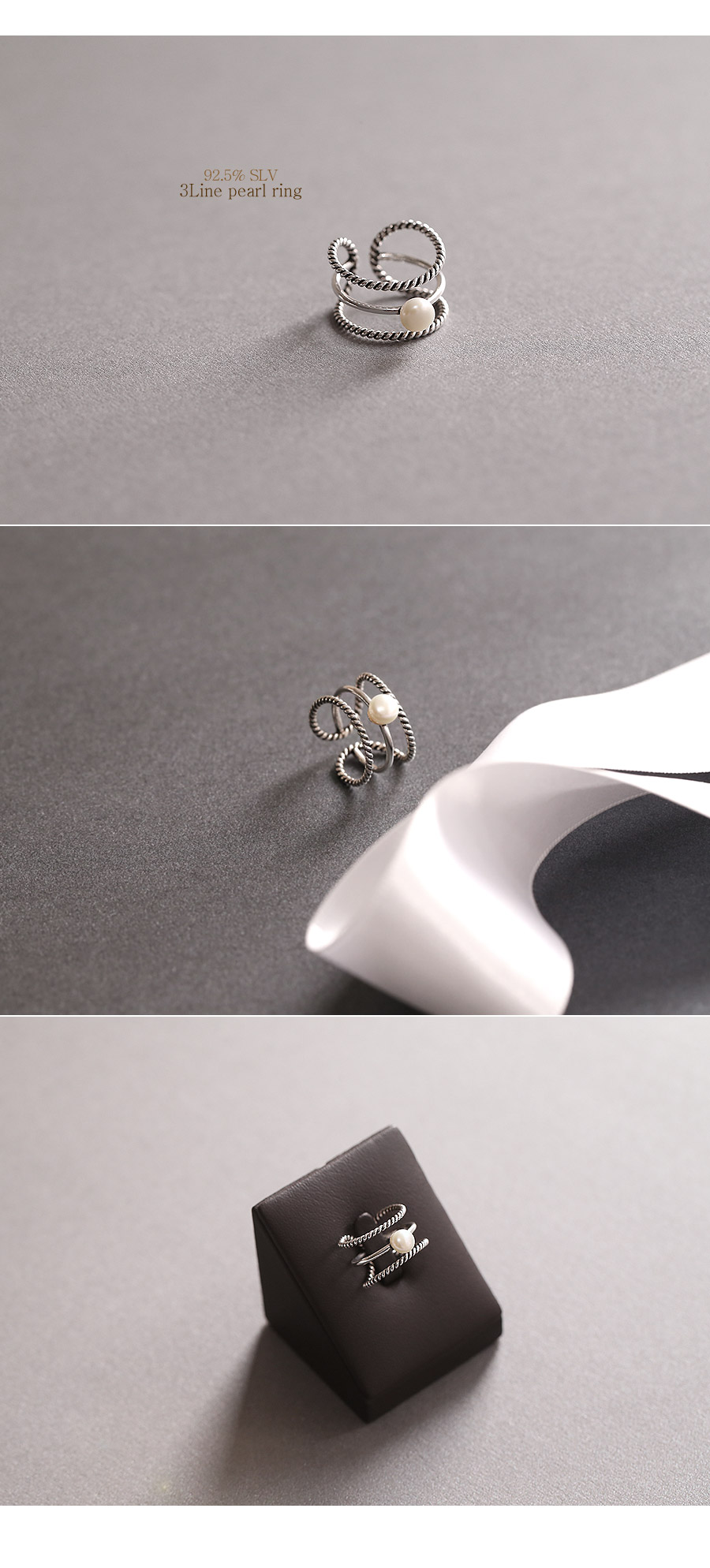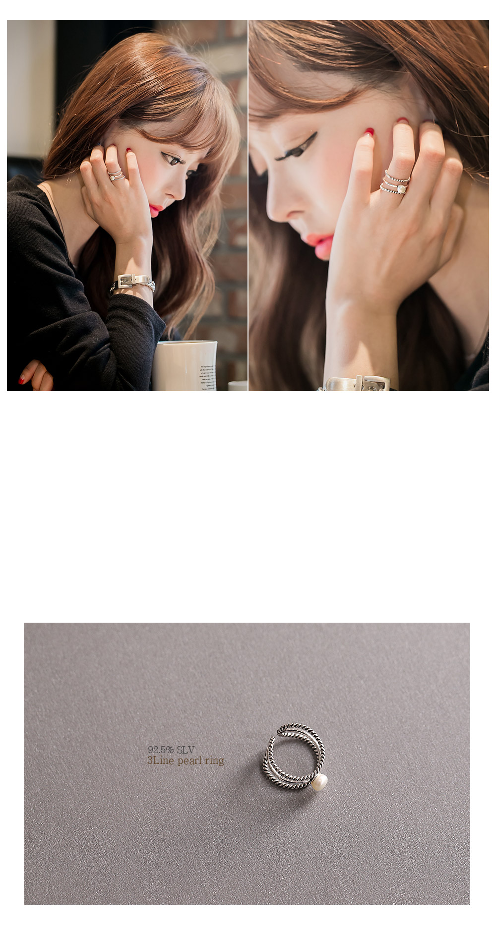 3가지의 반지를 레이어드해준 느낌의 유니크한 디자인 입니다.