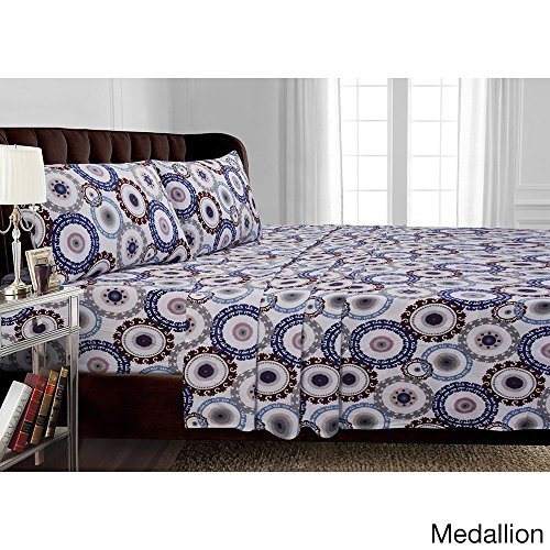 Studio : MARWAH CORPORATION Publisher : MARWAH CORPORATION Product Description Sleep cozily on these 170-gram all cotton flannel sheets available in a pallette of traditional and transiitional prints to easily cordinate with your other bedding. Brushed on both sides for softness, this sheet set feature double-needle detailing on flat and pillowcases and deep pocket fitted sheet to fit mattress up to 24 inches deep. The sheet sets are sold with pillowcases. An extra set of pillowcases is also sold separately. Sheet set includes: One flat sheet, one fitted sheet, two pillowcases (one in twin and twinXL sets)Pilllowcase set includes: Two (2) standard or king pillowcasesWeave: PlainWeight: 170 gsm Sheet type: Flannel, Printed, Extra Deep-pocketStyle: Contemporary, Classic, Transitional, TraditionalSizes: Twin, Twin XL, Full, Queen, King, California KingPattern: Paisley, Stripe, Medallion, Abstract Dot, Floral Hem detail: Double-needleFlat sheet: OversizedFitted sheet pocket depth: 24 inchesFully elasticized fitted sheet: YesPrint options: Navy/Bllue Sripe, Black/Grey Stripe, Floral Garden, Dahlia, Medallion, Rainforest, Paisley GardenMaterials: 100-percent cottonCare instructions: Machine Wash Cold. Do Not Bleach. Tumble Dry Low. Remove promptly from dryer to avoid wrinkles Twin Dimensions: Flat sheet: 66 inches wide x 94 inches long Fitted sheet: 39 inches wide x 75 inches long x 24 inches deep Pillowcase: 20 inches wide x 30 inches long TwinXL Dimensions: Flat sheet: 66 inches wide x 102 inches longFitted sheet: 39 inches wide x 80 inches long x 24 inches deepPillowcase: 20 inches wide x 30 inches long Full Dimensions: Flat sheet: 84 inches wide x 96 inches longFitted sheet: 54 inches wide x 75 inches long x 24 inches deepPillowcases: 20 inches wide x 30 inches long Queen Dimensions: Fitted sheet: 60 inches wide x 80 inches long x 24 inches deep Flat sheet: 94 inches wide x 106 inches longPillowcases: 20 inches wide x 30 inches long King Dimensions: Fitted sheet: 78 inches wide x 80 inches long x 24 inches deep Flat sheet: 112 inches 0