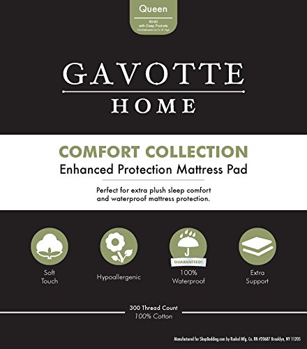 -. Title : Gavotte Home Enhanced Protection Mattress Pad - Hypoallergenic, Waterproof 100% Cotton Quilted Mattress Cover by ShopBedding