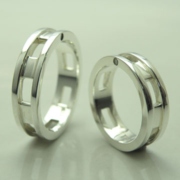 等間隔に抜きデザインされていて、両サイドの表面にダイヤが入っているタイプです。