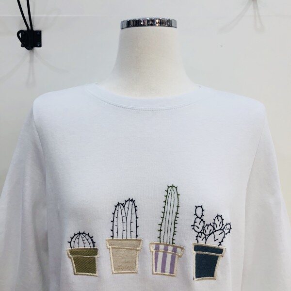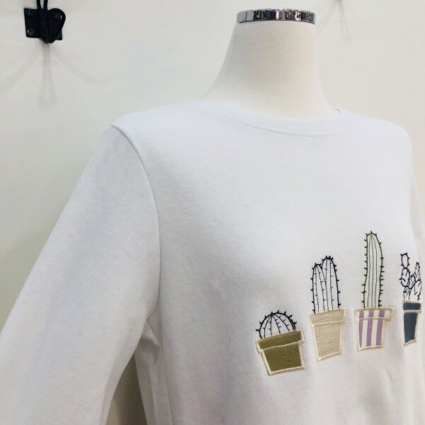 선인장 자수가 포인트인 라운드 면 티셔츠입니다. 7부 소매로 나왔으며 봄과 가을에도 무난하게 착용이 가능한 제품입니다.** 저희 멜로디가든매장은 상품이 매장에서 같이 판매가 이루어지기때문에 매장에서 선판매시 배송으로 받아보시는 기간이 5~7일 소요가 됩니다. 이점 양해부탁드립니다^^ 감사합니다♡**