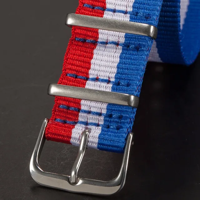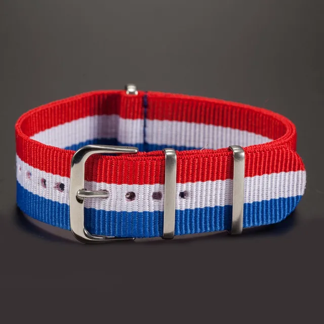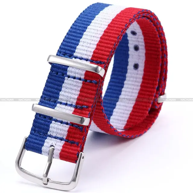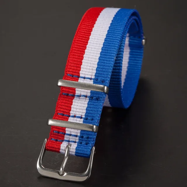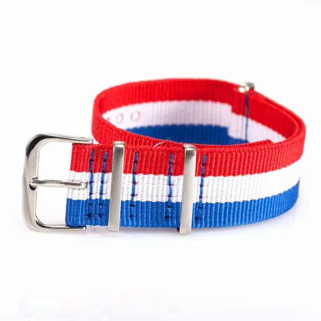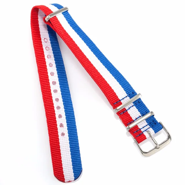 | [해외]브랜드 새로운 20 미리메터 블루 화이트 레드 스트라이프 나일론 캔버스 패브릭 스테인레스 스틸 버클 석영 스포츠 손목 시계 스트랩 밴드/WB2007 |