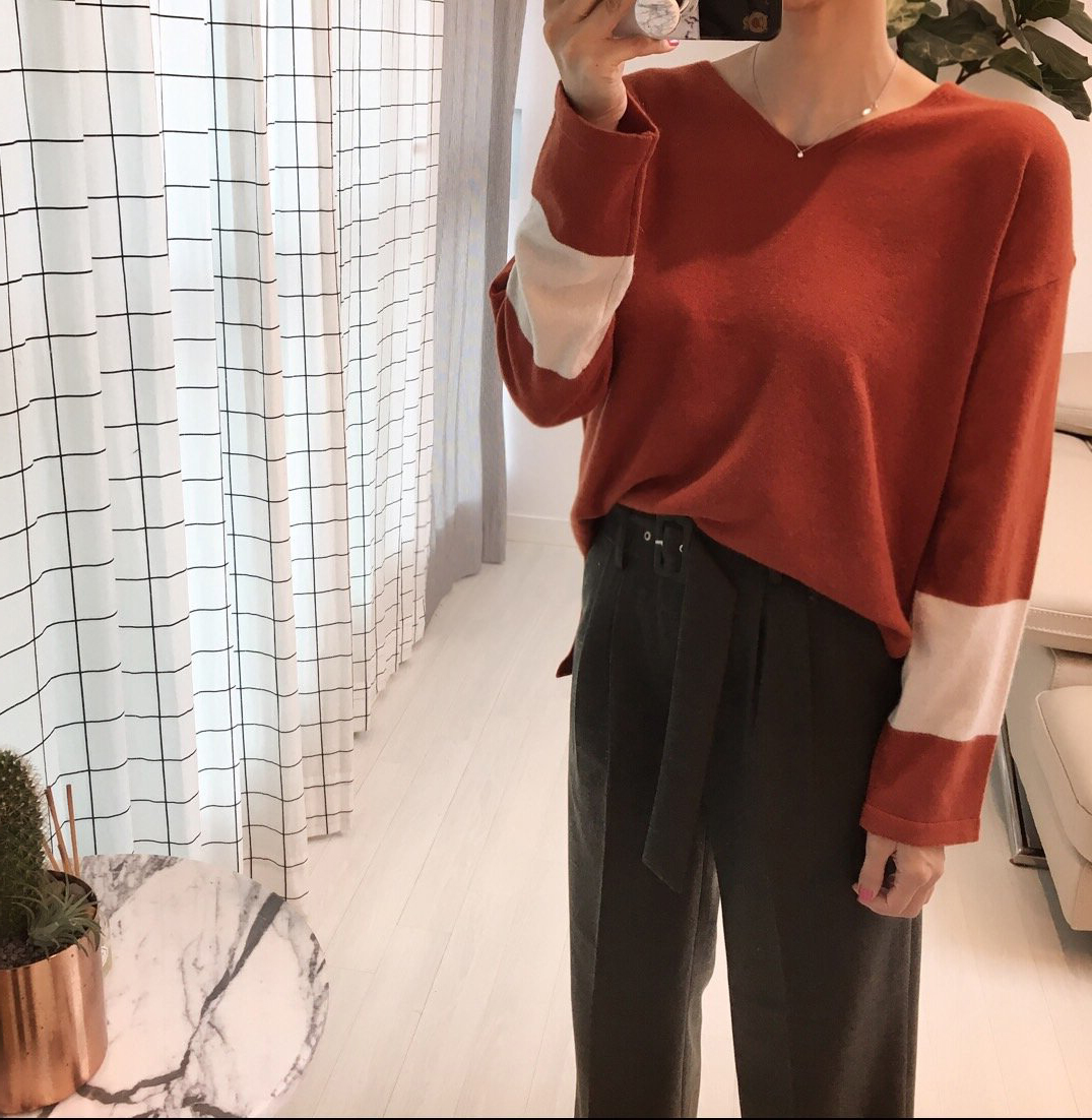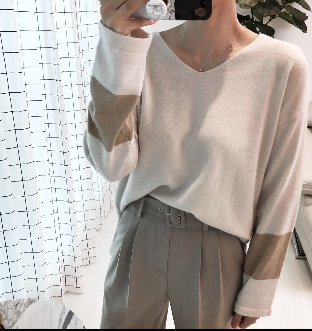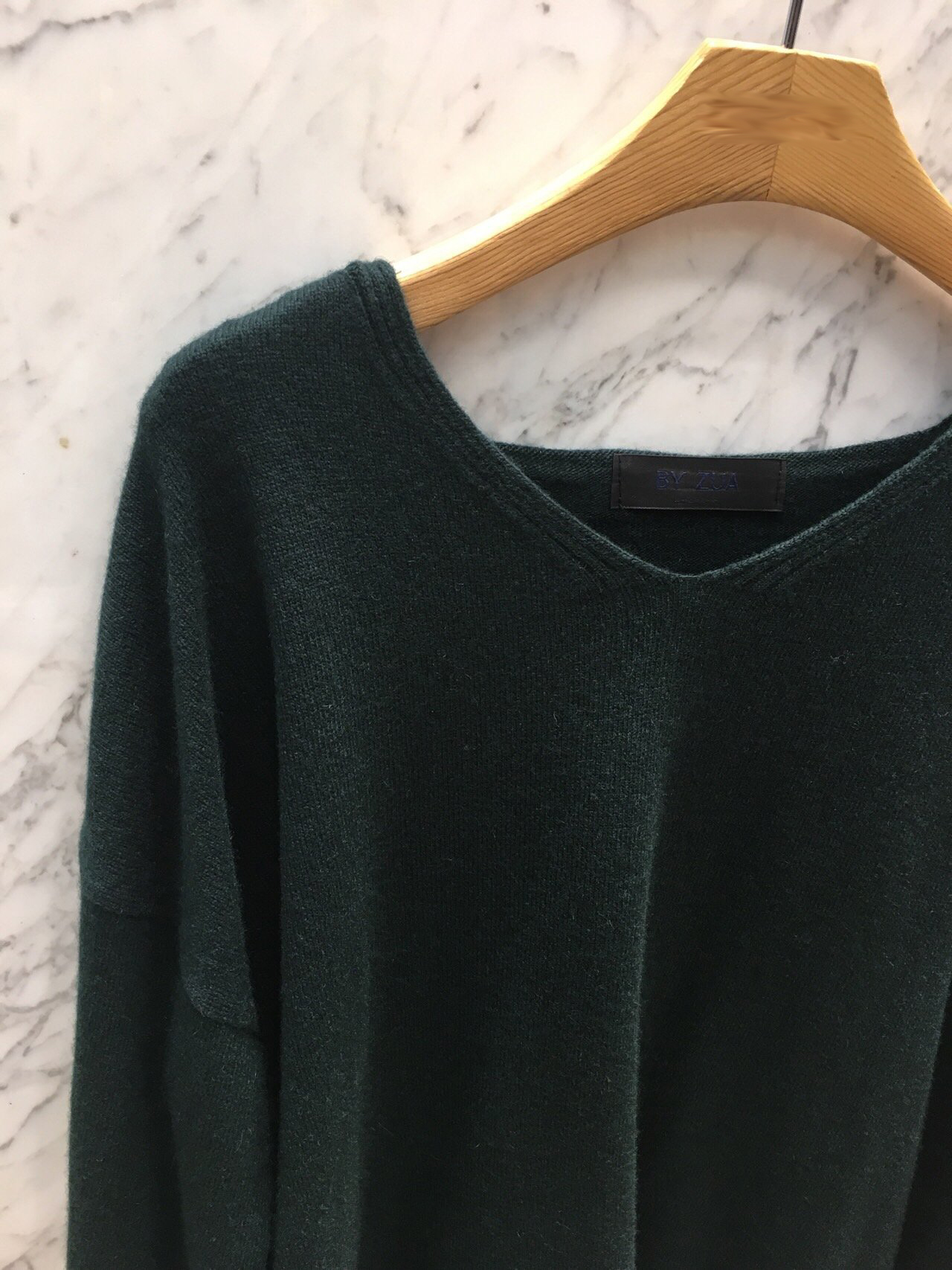 2017 Autumn Bauzu Cashmere V Neck Oatmeal Brick Green Black One