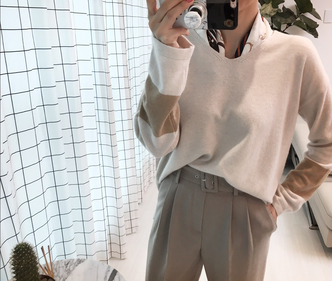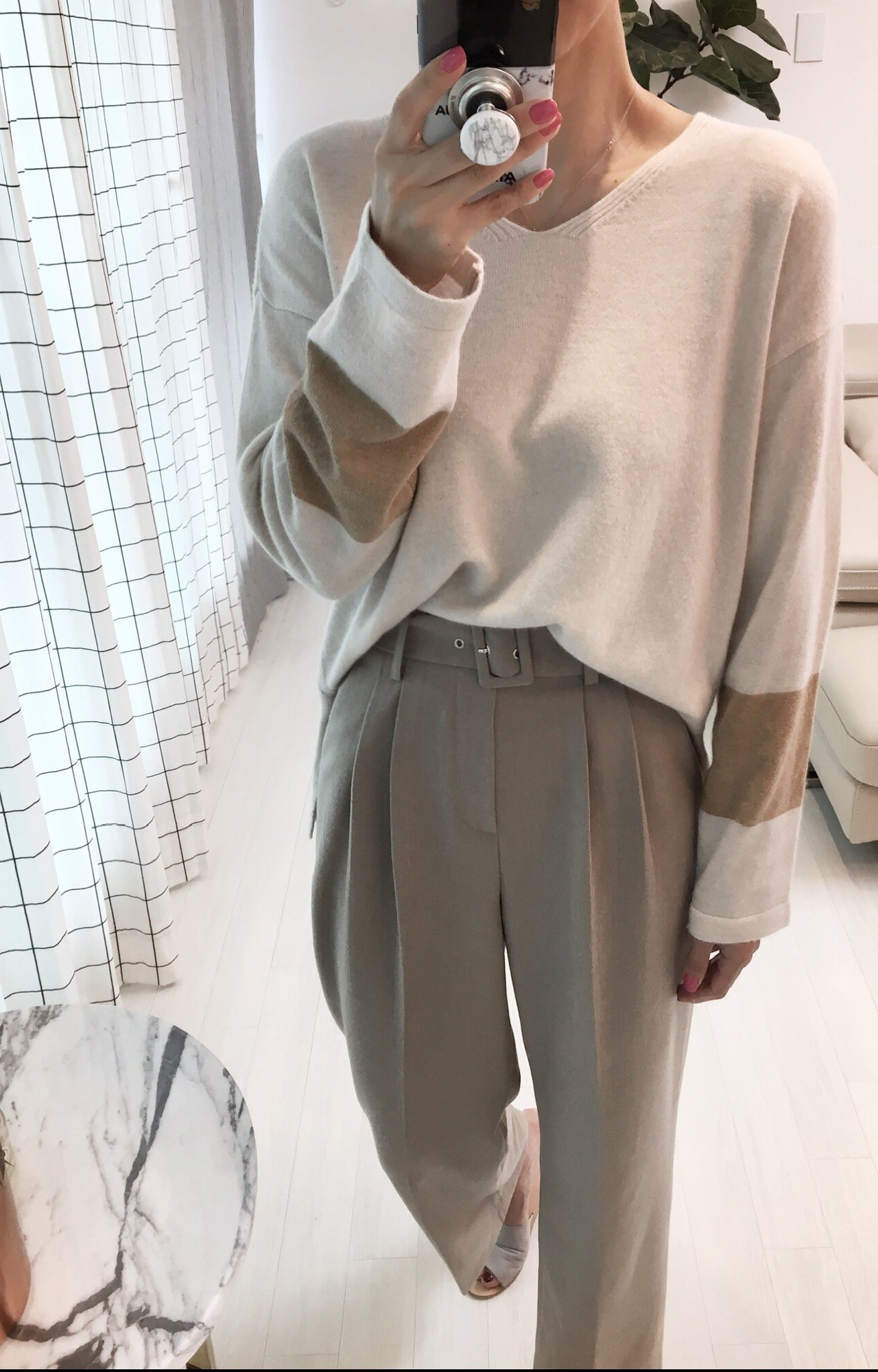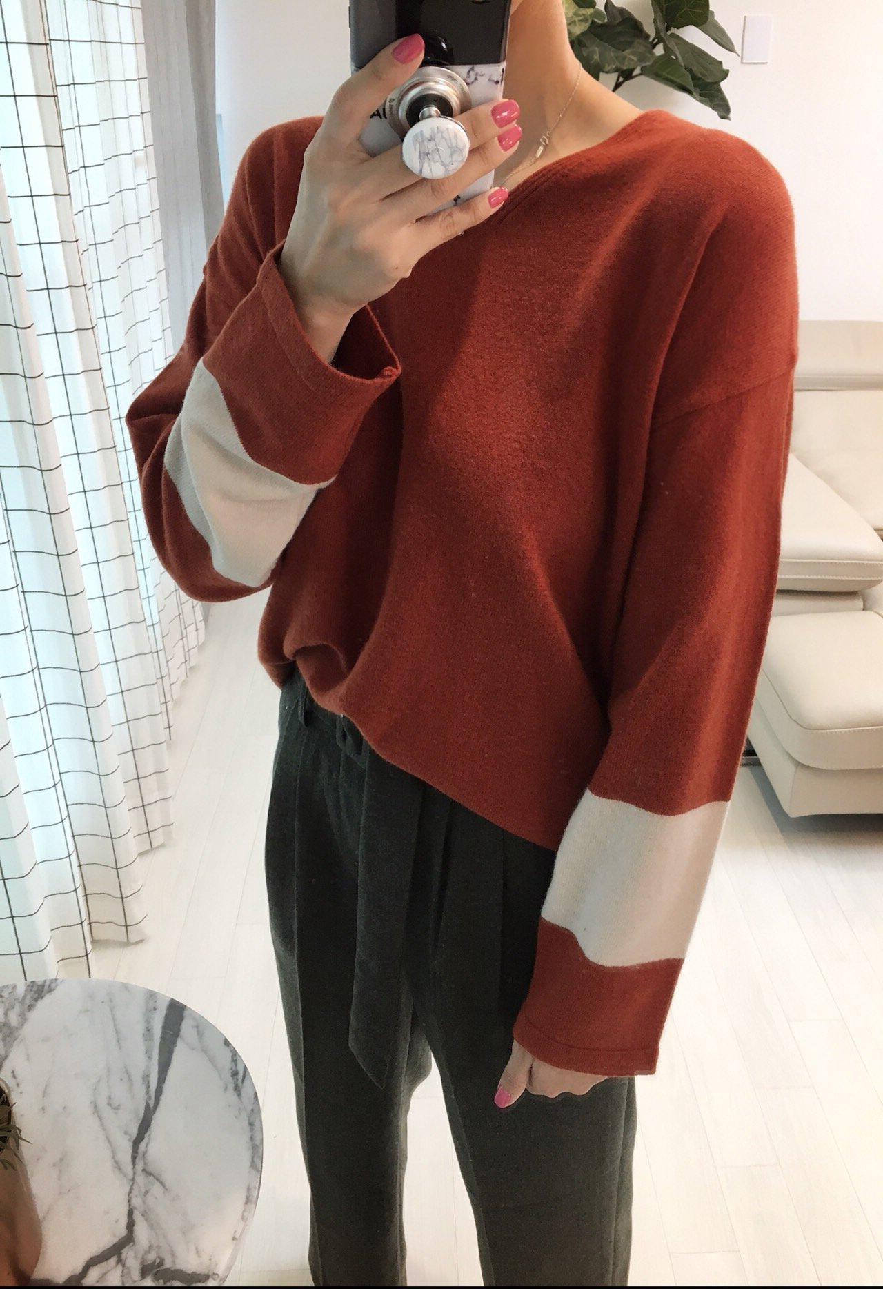 2017 Autumn Bauzu Cashmere V Neck Oatmeal Brick Green Black One