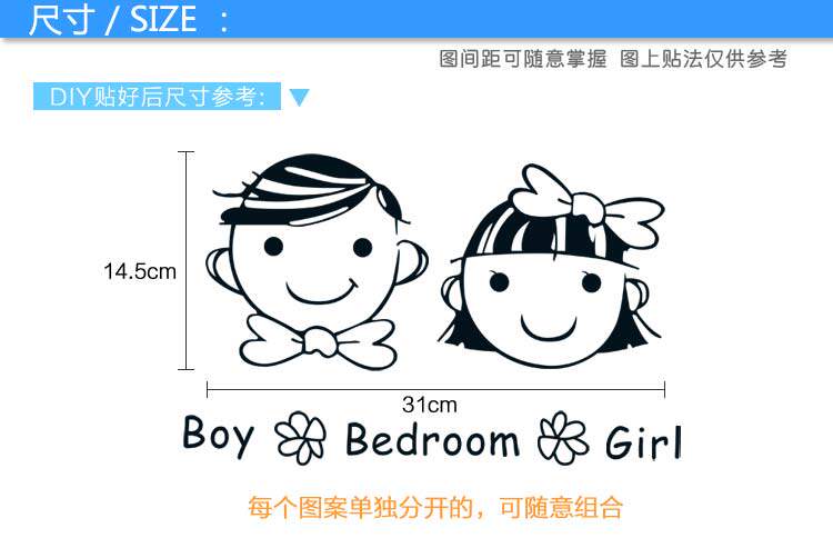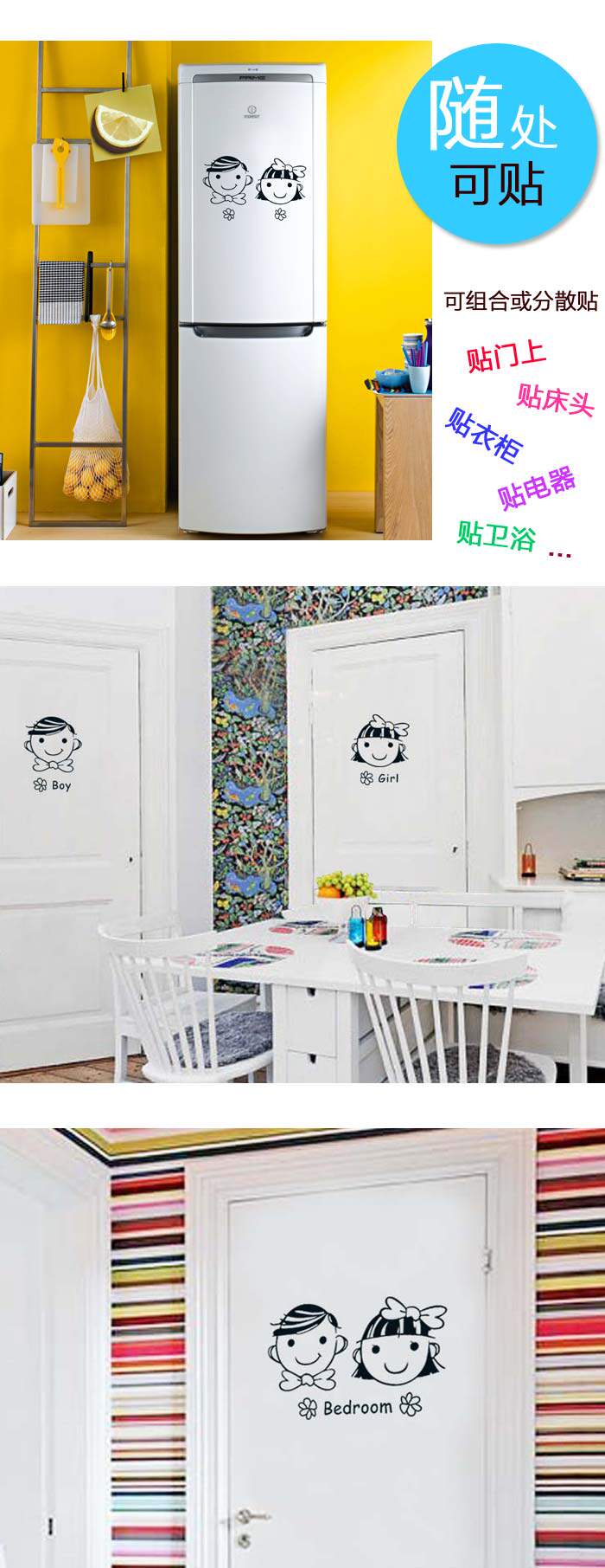 儿童房卧室洗手间标识冰箱门贴卫生间橱柜墙贴纸 男女头像