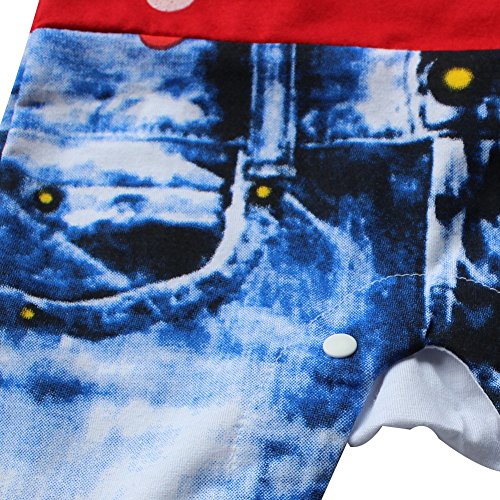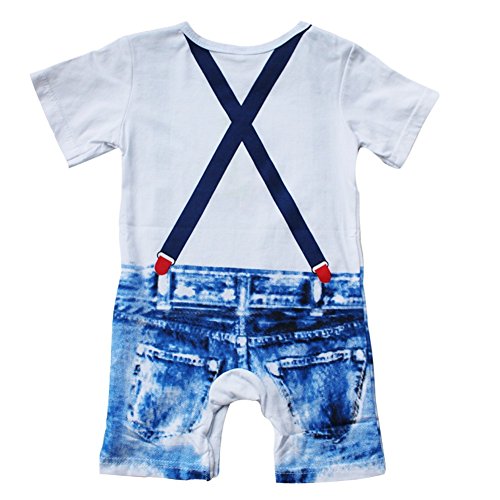 -. Feature : Material:Cotton, Polyester. / Very cool and comfortable. / A bowtie and braces P.R.Inted on front, tie-dyed jeans look bottom. / Snaps closure at one shoulder and crotch for easy change. / Perfect for birthday, party, summer holiday or daily wear.