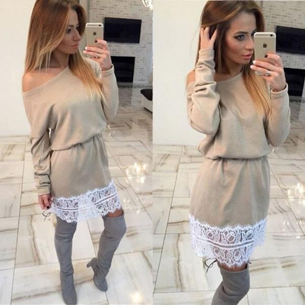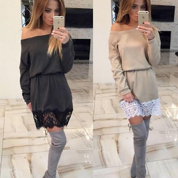| レースデザイン オフショルワンピース シャーリング ミニ丈 ひざ丈 セクシー 長袖 黒 ブラック ベージュ 【裾レース オフショルワンピース レディース 女性 黒 ブラック ベージュ ワンピース ロンデルブラック パーティー ワンピ セクシー】 |