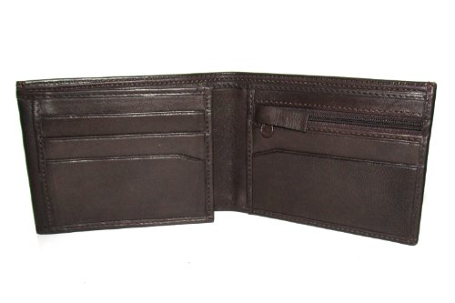 Sakkas Men's Bi-Fold Leather Wallet with 7 Credit Card Slots/ 1 Coin Pocket with Zipper Closure - Comes in a Gift bag - Brown