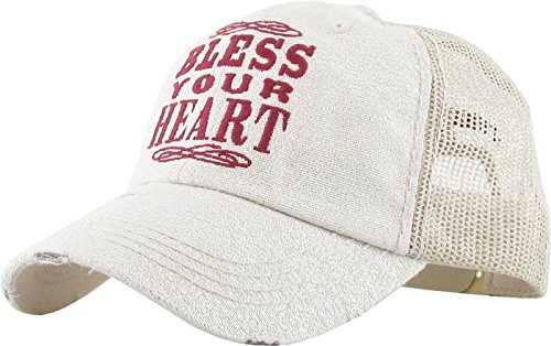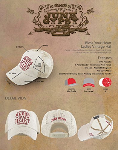 -. Feature : Junk Gypsy Brand Mesh Back Adjustable Trucker Hat / Bless Your Heart Embroidery Design / One Size Adjustable Snapback Fits Most Sizes / 100% Polyester - Glittery Style Fabric / Pre-Curved Visor - Vintage Distressed Look - 4 Panels of Mesh Back Structure
