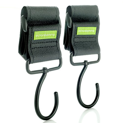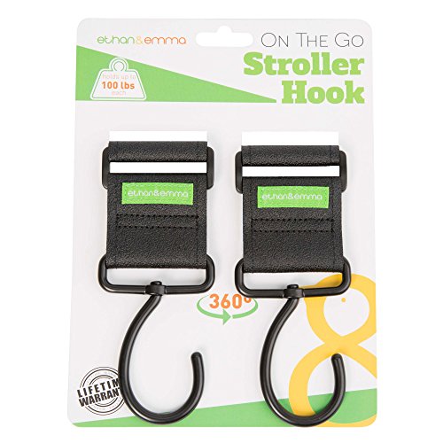 Stroller Hooks, Metal, 360 Degree Rotation By Ethan & Emma (2 Hooks Per Pack)