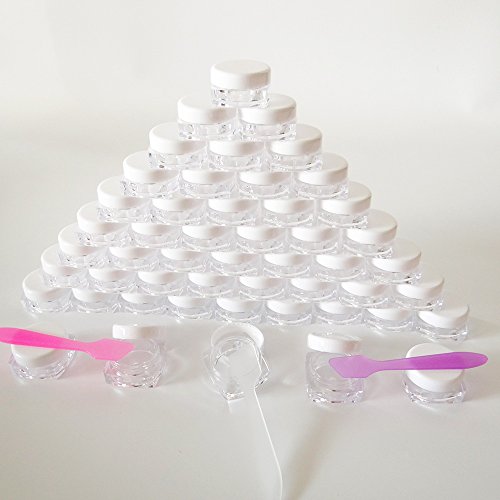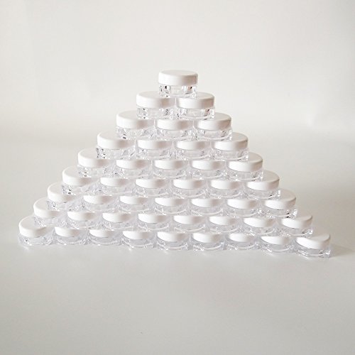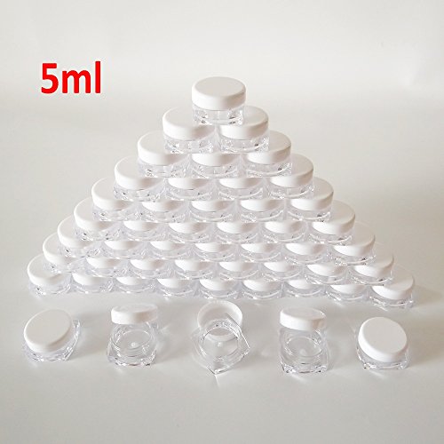 - Quantity - 50pcs 5 gram clear empty container pot jar. Diameter is about 1.1 inch and the height is about 0.5 inch.