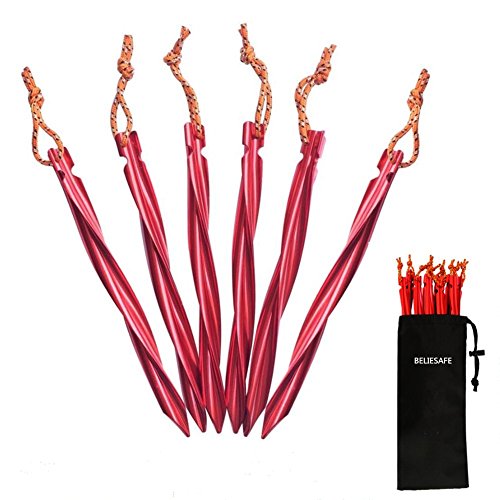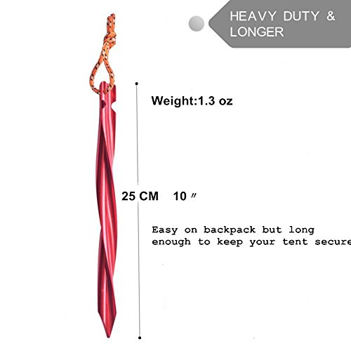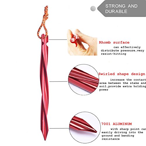 HIGHLY VISIBLE-In racing red with anodized treatment, the ground stakes WILL NOT BE LOST in the long grass;The highly reflective pull cords also ensures easy removal and visibility so you don't unnecessarily kick them around your tent at night