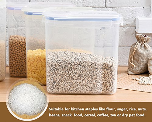 - Container boxes are suitable for kitchen staples like flour, sugar, rice, nuts, beans, snack, food, cereal, coffee, tea or dry pet food.