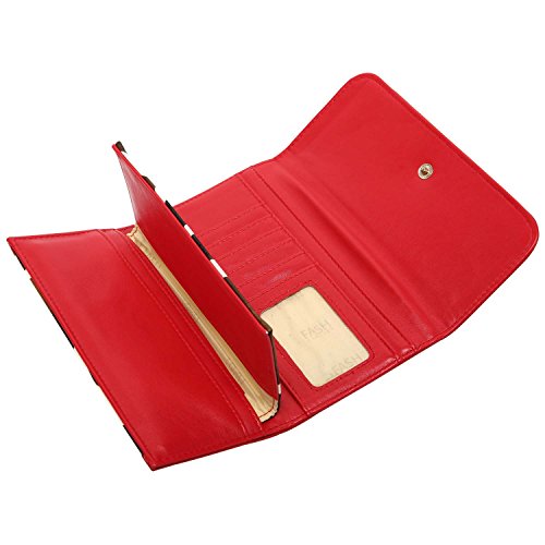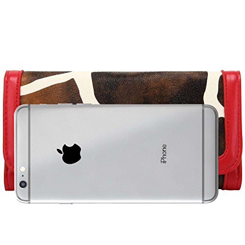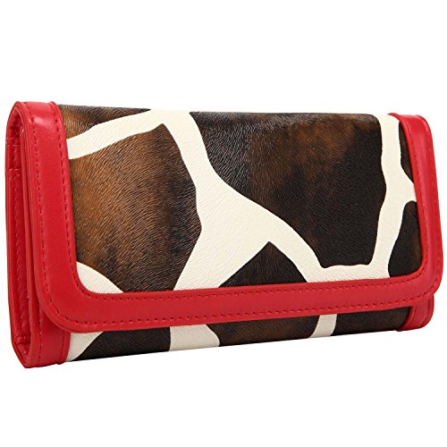 FASH Giraffe Print Clutch Wallet with Checkbook Holder and Red Trim