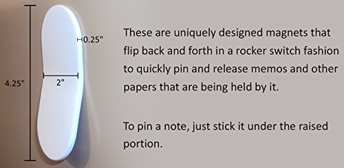 DESIGN : These are uniquely designed magnets that flip back and forth in a rocker switch fashion to quickly pin and release memos and other papers that are being held by it.