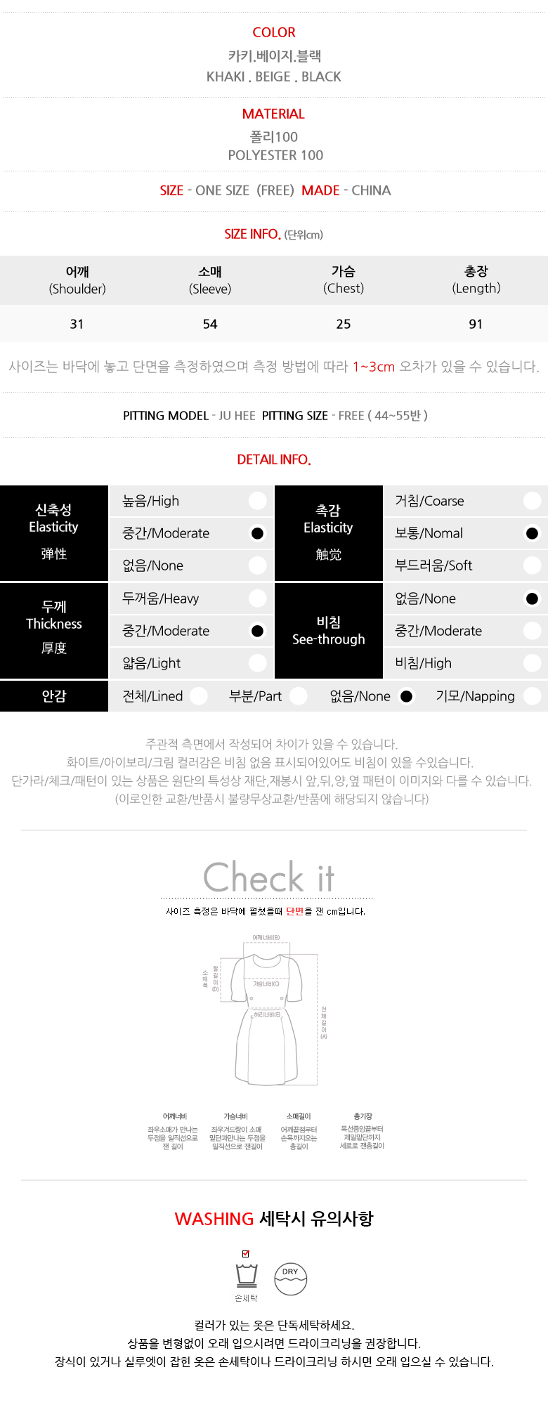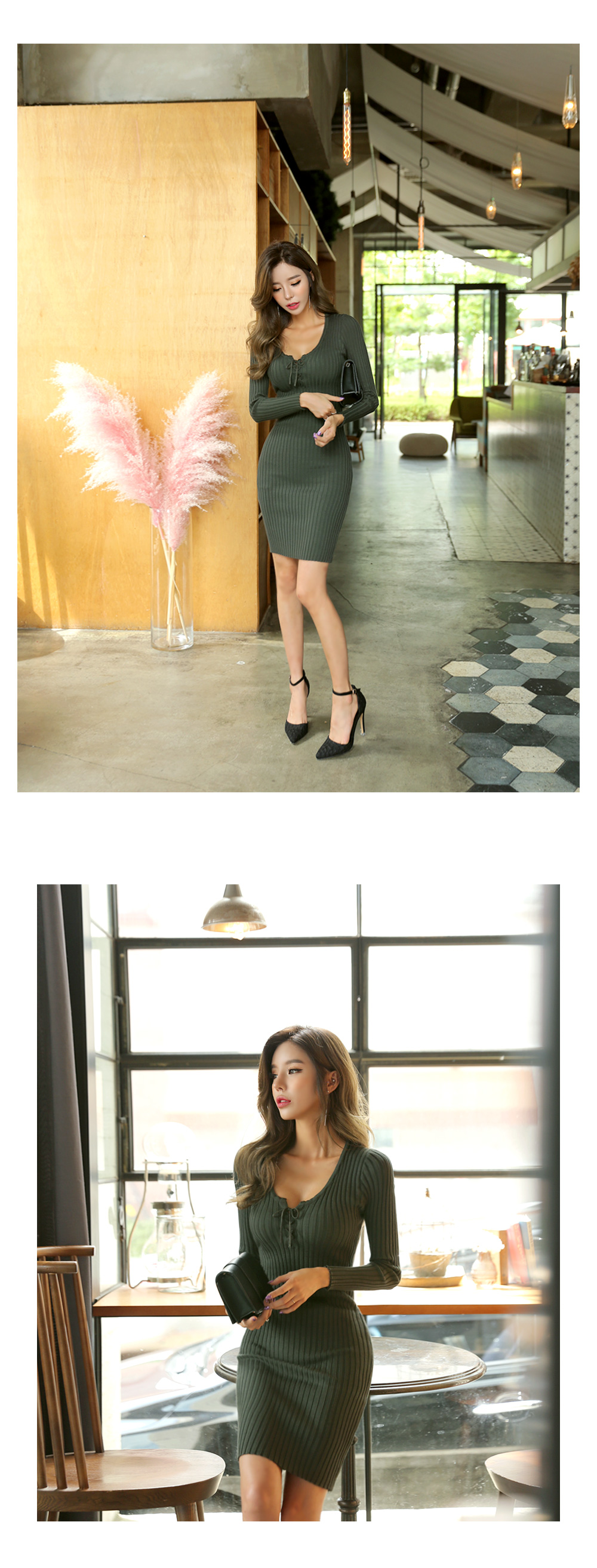 ![]() MD COMMENT 섹시하면서 캐주얼한 룩을 연출하실 수 있는 원피스를 소개해요 바디에 타잇하게 핏되는 디자인으로 글래머러스한 바디라인을 연출해주구요 중앙에 아일렛으로 섹시한 포인트를 준 제품이에요 허벅지 까지 오는 살짝 숏-한 기장감으로 다리라인이 슬림하면서 길어보이는 효과를 주었구요 하나쯤 소장하고 계신다면 자주 찾게될 아이템으로 추천해 드릴게요 DETAIL TIP 폴리100% 소재로 제작되었구요 쫀쫀한 신축성으로 편안한 착용감을 자랑하며 골지 소재 특성상 늘어짐에 따라 약간의 비침이 있을 수 있으니 이 점 참고해주세요 SIZE TIP 원 사이즈 제품이며 44~55반 사이즈까지 프리하게 착용할 수 있는 아이템이에요 착용컬러 : 카키 착용모델 : Ju Hee ![]() ![]() ![]() ![]() ![]() ![]() ![]() ![]() ![]() ![]() ![]() ![]() |