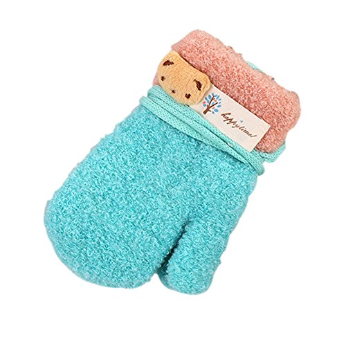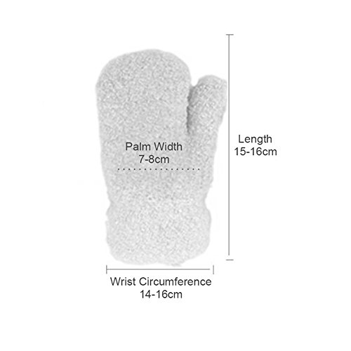 Binding : Apparel Product Description Cute cartoon bear decor, attractive to toddlers Designed with a string, don't worry about little ones lose them Coral fleece mittens keep baby warm in cold weather, soft and comfortable to wear Don't have to try and get infants' fingers into holes, easy and convenient to put on or take off Suitable for 3-8 years old babies, but for reference only, please according to the size chart Material: Coral Fleece Size: Length: 15-16cm Palm Width: 7-8cm Wrist Circumference: 14-16cm Color: Nude Pink/Lake Blue/Dark Blue/Red/Dark Green/Camel Package Including: 1 Pair of Gloves 0