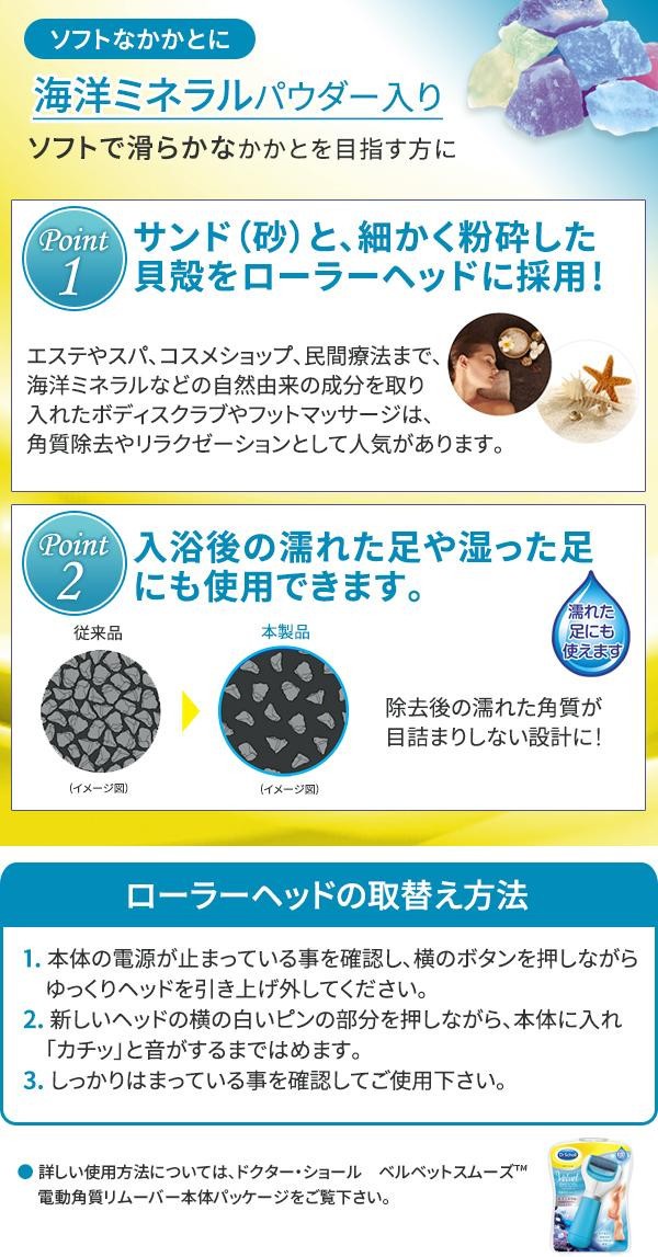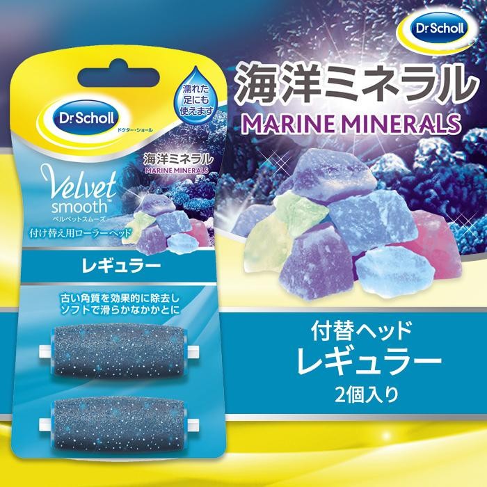 濡れた脚にも使える、ベルベットスムーズ電動角質リムーバーの付け替え用ローラーヘッド(2個入り)です。海洋ミネラル入りのローラーが古い角質を除去し、ソフトで滑らかなかかとに仕上げます。 |