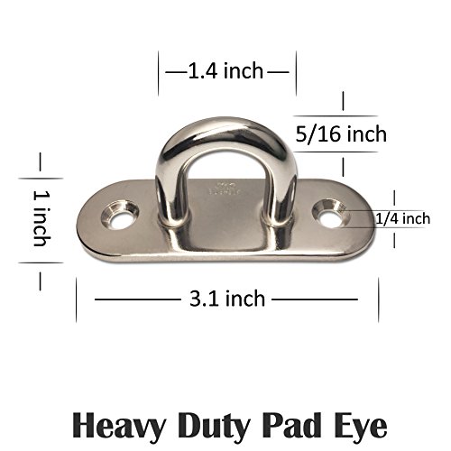 4-pcs Stainless Steel Wall Mount Hook/Pad Eye (3-inch)