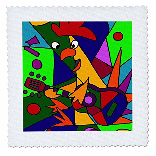3dRose Funny Colorful Chicken Playing Guitar Modern Art - Quilt Square, 6 by 6-Inch (qs_224773_2)