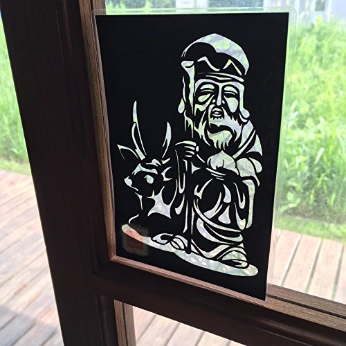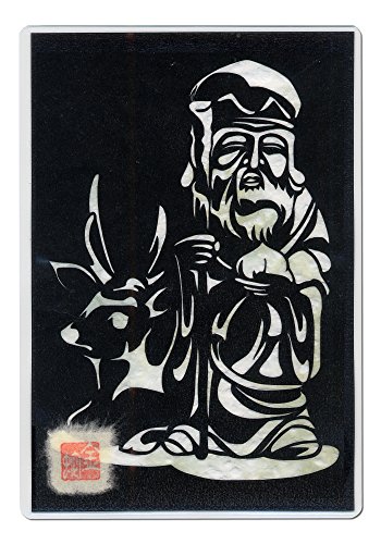 Cutout picture Japanese art collage KIRIE “Seven Lucky God · Zyurojin” Seven Deities(Gods) of Good Fortune Made by Washi(Japanese paper) Wakakami color, 4” x 6”