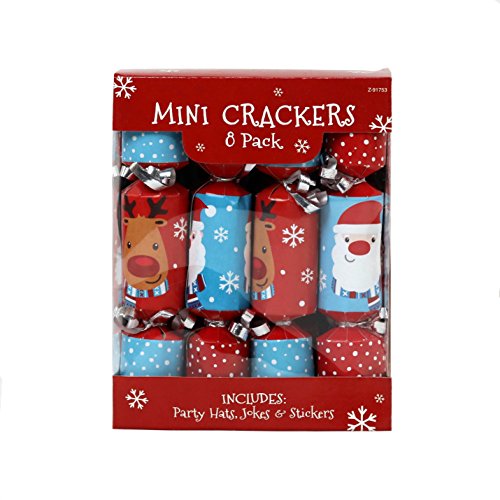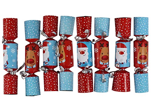 Iconikal 6.5-inch Mini Crackers 8-Pack (Blue Santa, Red Reindeer)