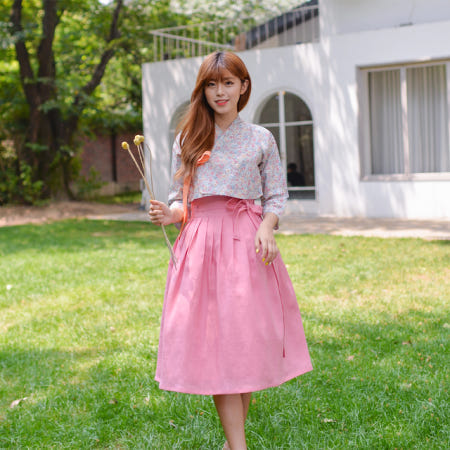 -모델은 "린넨 진핑크"허리치마와 코디하였습니다.