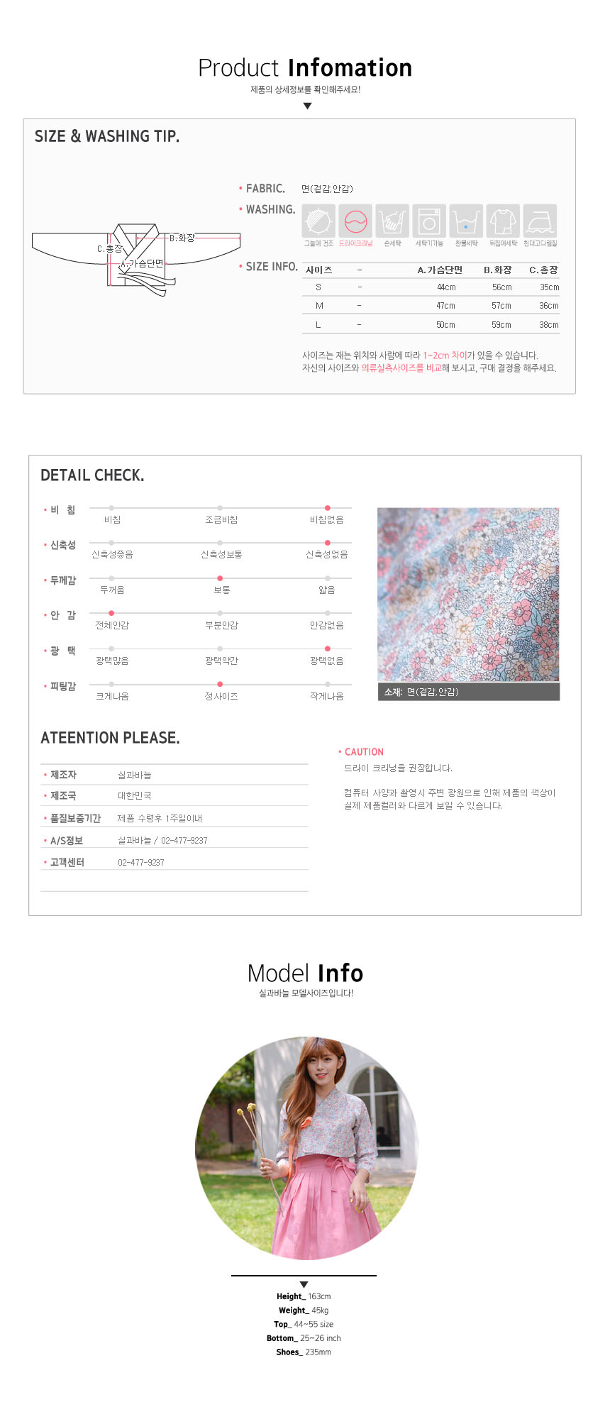 [실과바늘]생활한복 저고리 - 칠부 수련 S,M,L