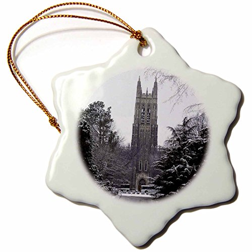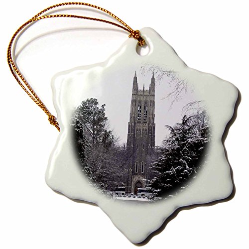 3dRose orn_55281_1 Duke University Chapel Durham Snowflake Decorative Hanging Ornament, Porcelain, 3-Inch