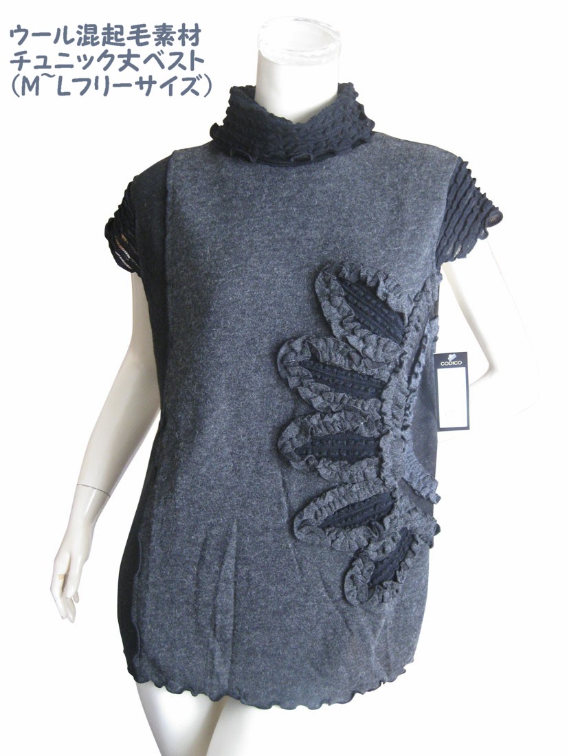【M〜Lフリーサイズ】ウール混起毛素材モノトーンチュニックベスト