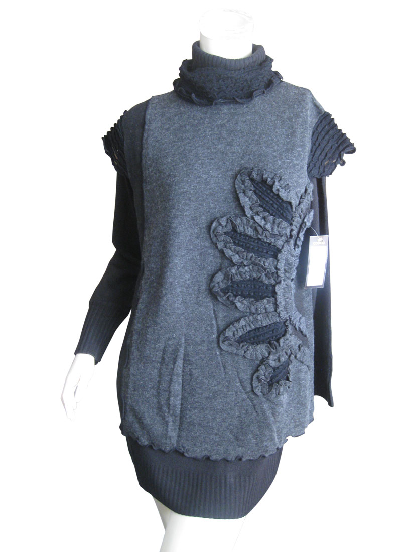 とても温かくお洒落なウール混チュニック丈ベストです。