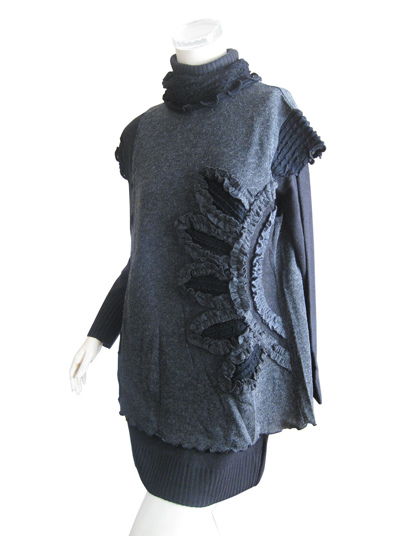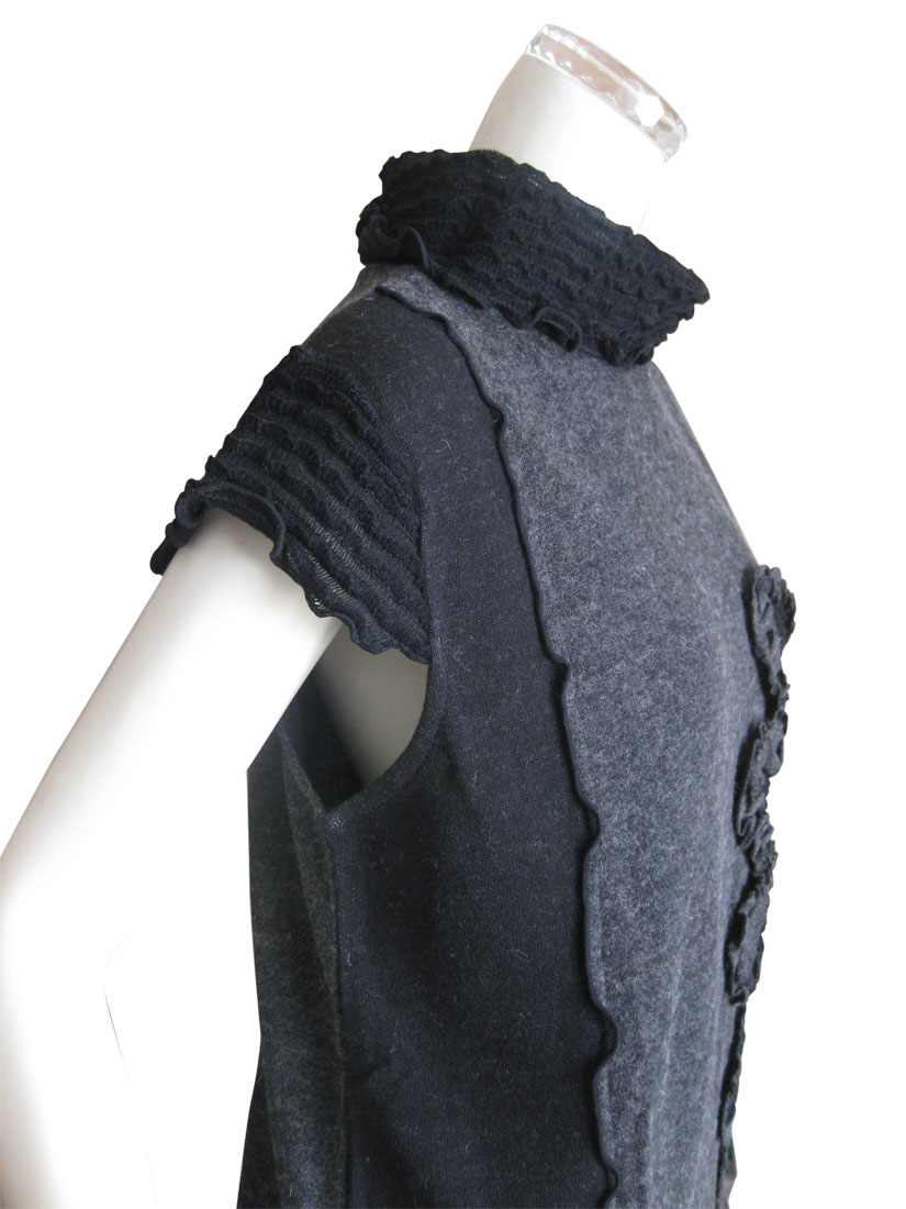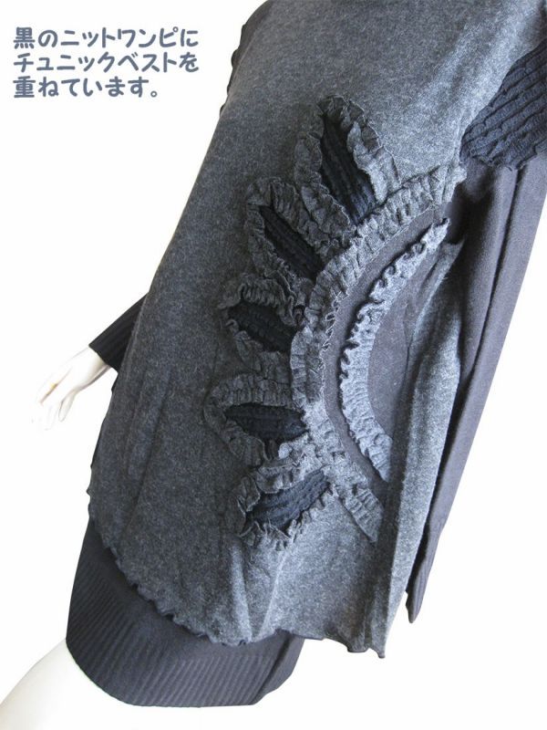 ベスト チュニックベスト 重ね着 ウール 毛 リボン刺繍 秋冬 モノトーン