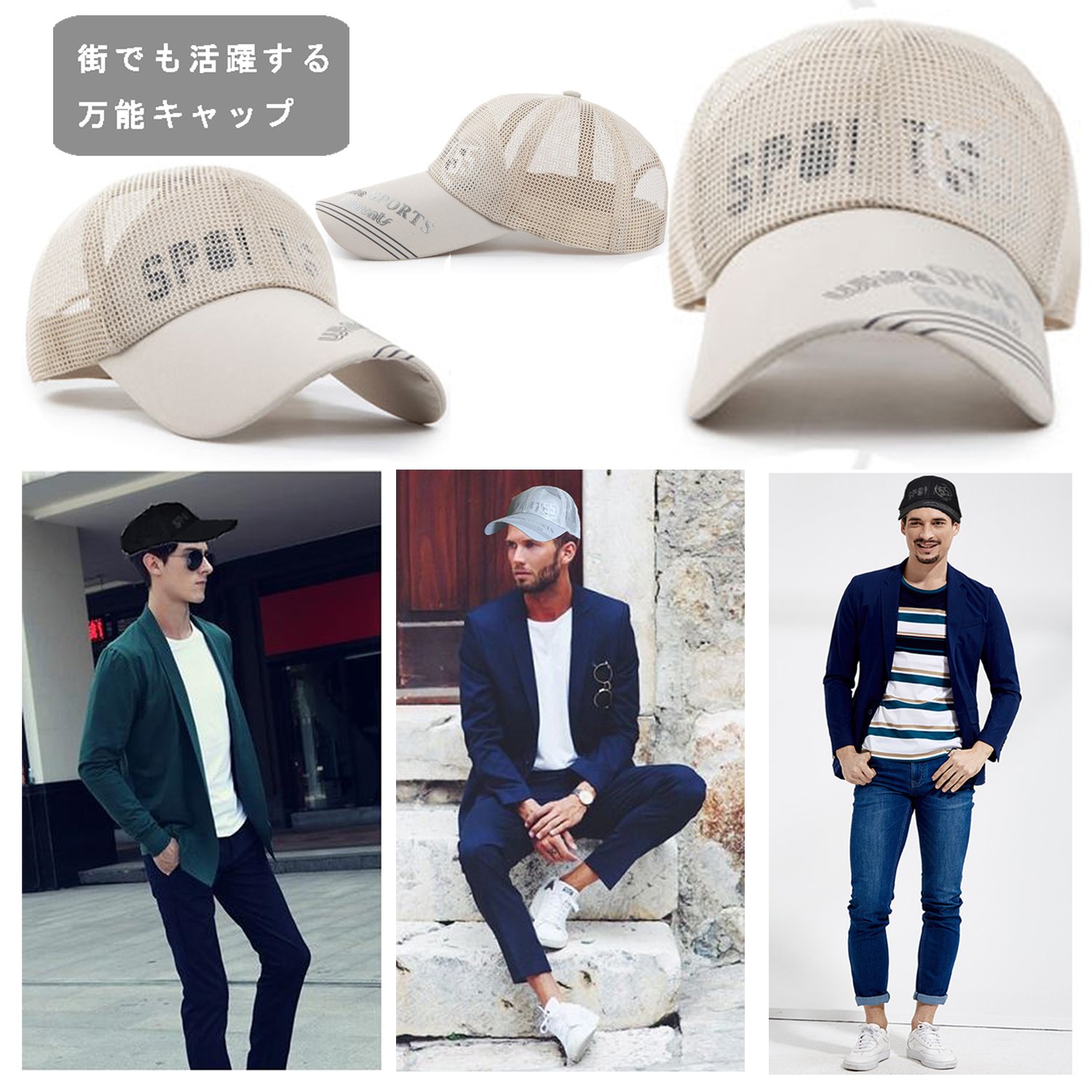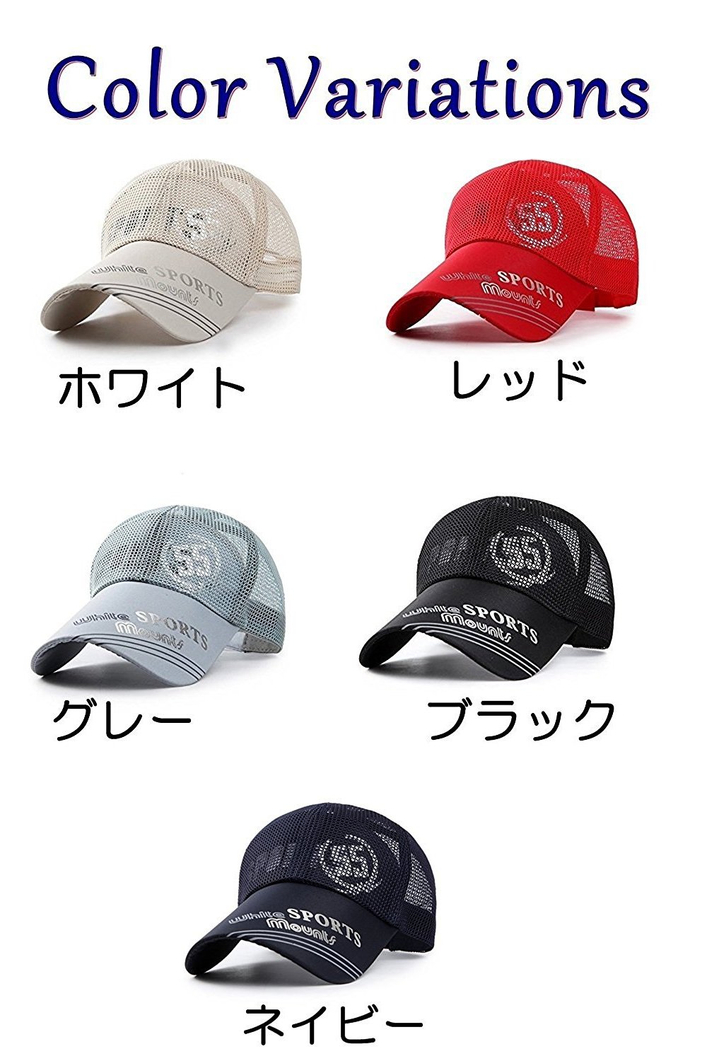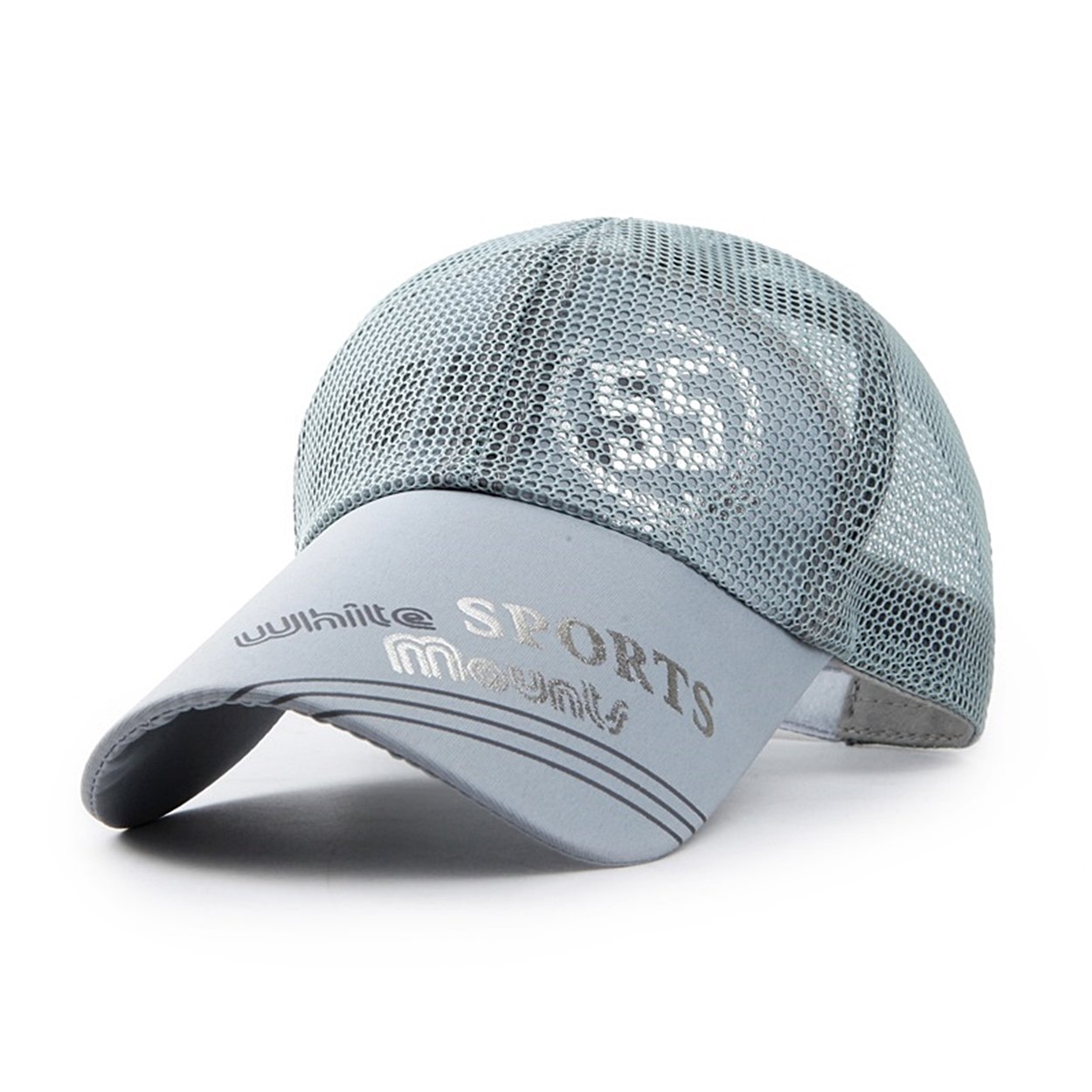 A logo of numbers and a logo that can be seen through the mesh are fashionable caps.
