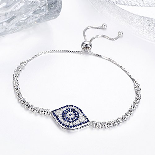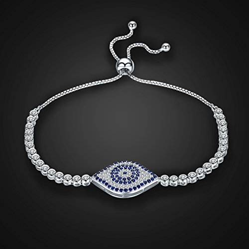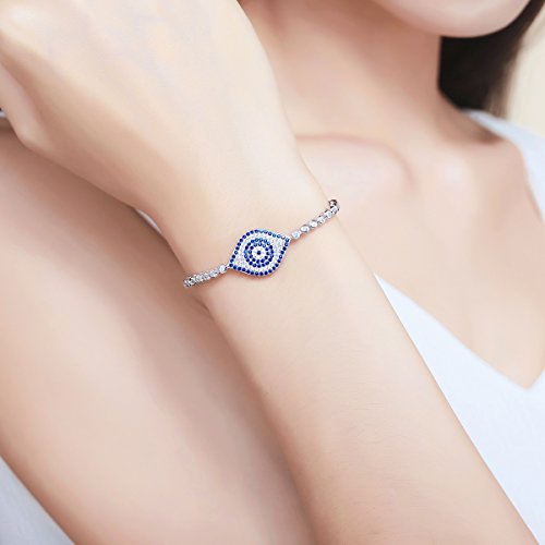 ◈ Blue Evil Eyes Adjustable Bracelet for Female Fashion CZ Jewelry.