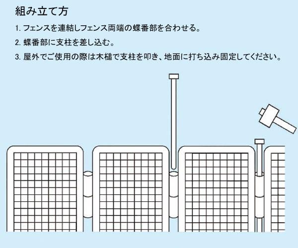 | ペットをはじめとした簡易フェンスとしてお使い頂けます。フェンスパネルを連結すれば、形・大きさは自由自在です。 |