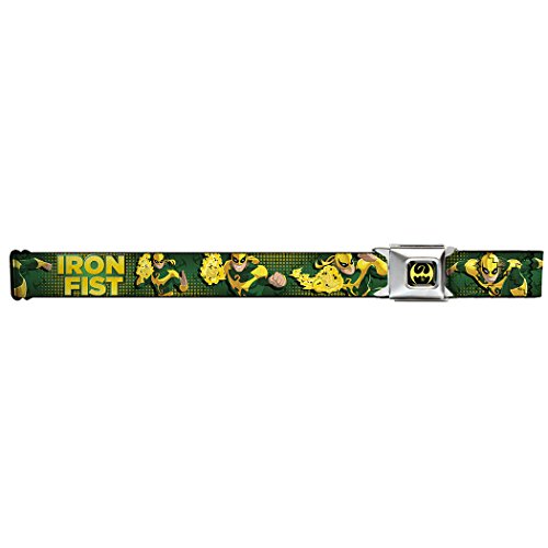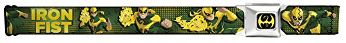 Product Description ULTIMATE SPIDER-MAN Iron Fist Dragon Logo Full Color Black/Yellow Seatbelt Belt - Iron Fist Action Poses Halftone Greens/Yellows Webbing 0