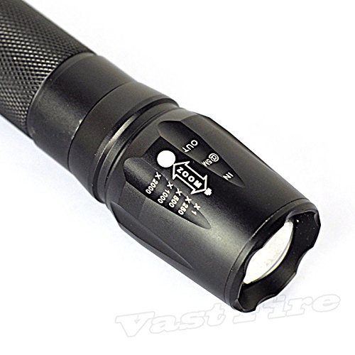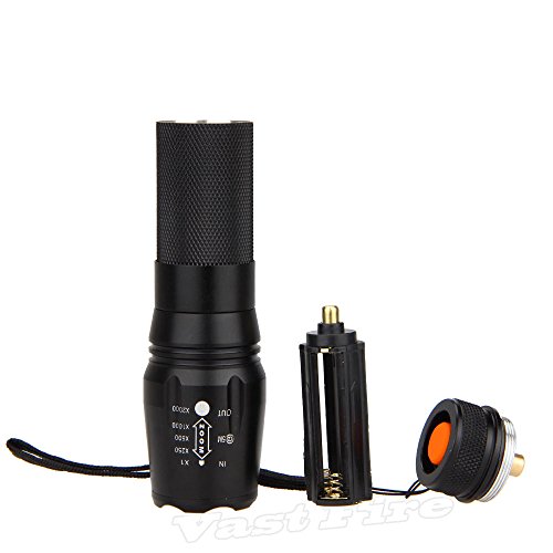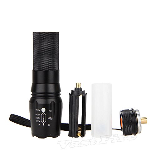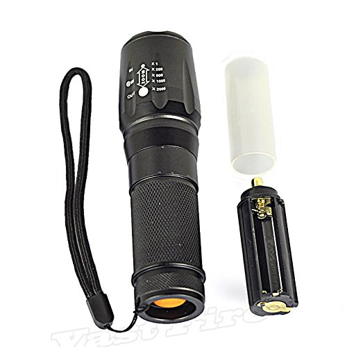 Studio : imported Publisher : imported Product Description Product Description Made of high quality 6061T aluminum alloy, this flashlight is sturdy and durable enough for long time daily using Lamp base: , high power LED. With a lifespan of up to 100,000 hours or more, no need to consider replacing the cap for the whole life. Waterproof, but don't put it into water long time Super Bright, blinding Effect Crenellated strike bezel for enhanced self-defense 7 Mode: high / middle / low / strobe / sos / Zoom In Zoom Out Bulb: XM-L T6 LED Max output: 6000 lumens Power by: 1x26650 or 1x 18650 3.6v/3.7v OR 3X AAA battery(not included) Size(mm):160 x 40(bezel)/28(body) Net Weight (g): 180g Color: Black. What Package 1x 6000lm XM-L T6 LED Flashlight 1x 3xAAA Holder 1x 18650 Holder 0