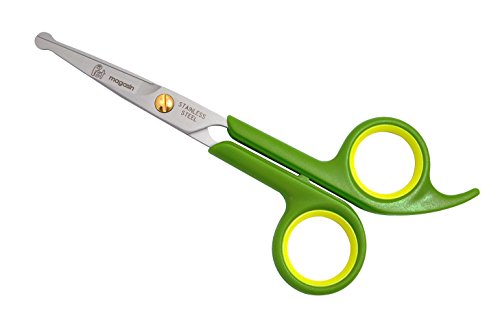 - Feature : Price for 1, but you get 2. Package includes : 1 of 6.5 inch long pet body grooming scissors + 1 of 6 inch long pet facial grooming scissors / Pet Magasin Guarantee - 2 years warranty + 100% money back guarantee / Stainless steel blade makes it look elegant and gives it a long life span / Extra cushion on the inside circle to reduce fatigue; grooming your pet's hair can be a long process, so you want your fingers to be relaxed at all time / Round-tipped top prevents accidental cut to yourself or your pet because safety is always our top concern