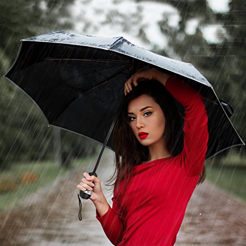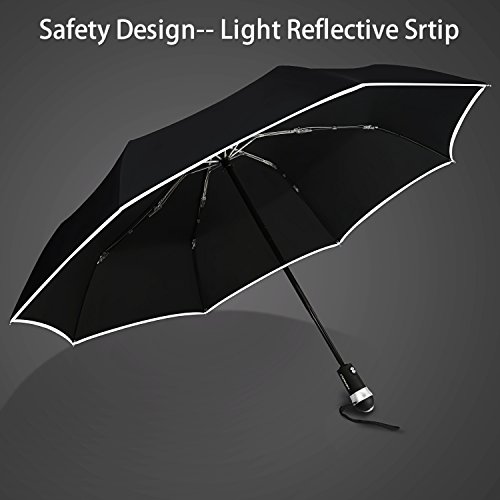 -. Title : Compact Windproof Umbrella, Automatic Travel Umbrella with Auto Open Close Handle for Women and Men,Large Lightweight Folding Canopy Rain Umbrella Light Reflective for Car&Outdoor Use-Black