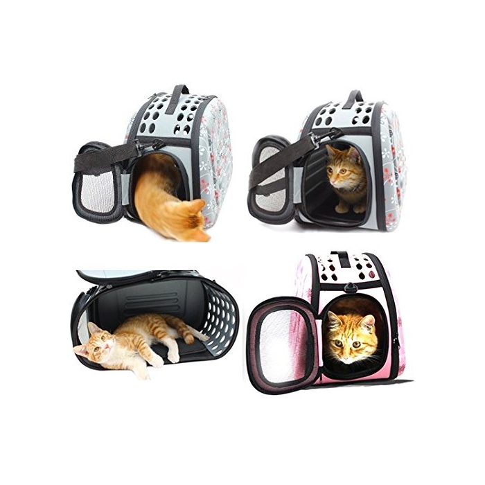 Kasamy 애완동물 캐리 백 접어 서 보 숄더 벨트 부개와 고양이 소동물 외출 용 2점 세트